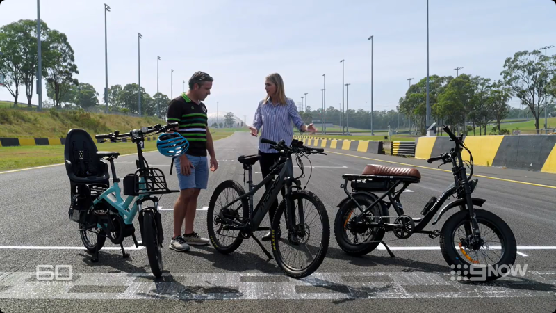 Above: Bicycle NSW CEO, Peter Mclean demonstrates various legal and non-legal e-bikes to host, Amelia Adams.