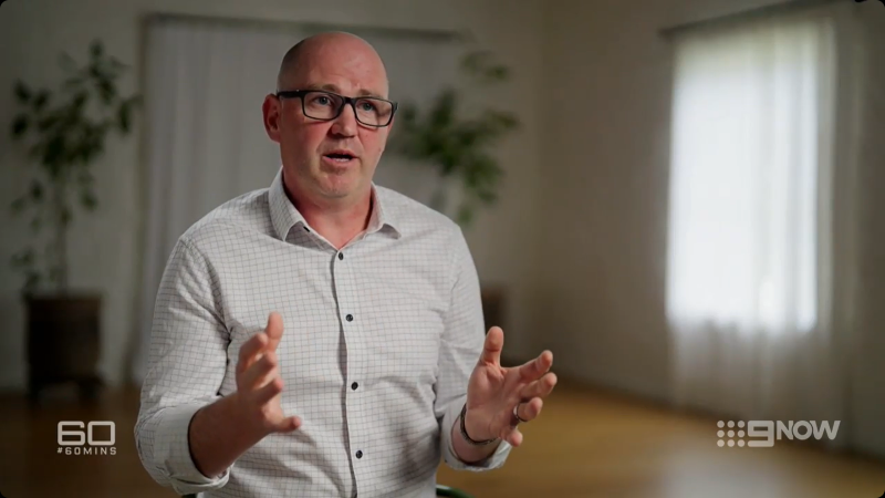 Above: Peter Bourke is interviewed by Amelia Adams on 60 Minutes.