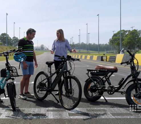 Above: Bicycle NSW CEO, Peter Mclean demonstrates various legal and non-legal e-bikes to host, Amelia Adams.